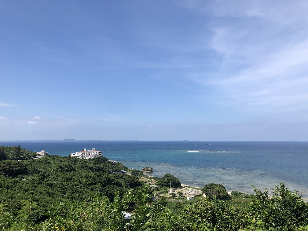 下の写真は沖縄でドライブスポットとして有名な知念岬から見た海です。